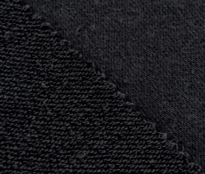 Badstof:De stof is gemaakt van badstof, met vezels met lussen aan een of beide zijden van de stof. Deze lussen verbeteren het absorptievermogen van de stof, waardoor het ideaal is voor badhanddoeken, badjassen en andere items die vocht efficiënt moeten absorberen. Het badstofweefsel voegt ook een zachte textuur toe, waardoor het zacht aanvoelt tegen de huid.