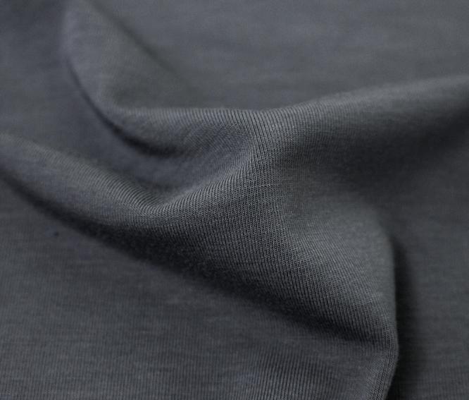 Gebreide jersey:De stof is gebreid met een enkele jerseyconstructie, waardoor een glad, rekbaar en flexibel oppervlak ontstaat. De tricotstructuur zorgt ervoor dat de stof zijn vorm behoudt en comfortabel en zacht aanvoelt op de huid. Dit maakt de stof ideaal voor kleding die veel comfort en flexibiliteit vereist.